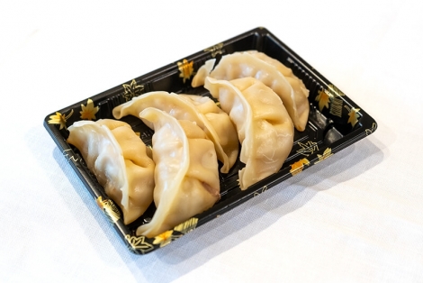 5 gyoces farcides de vegetals acompaņades d'una cervesa.